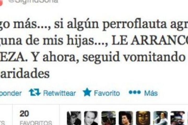 Sigfrid Soria, exdiputado del PP canario, ha provocado una fuerte polémica a través de su cuenta en Twitter, donde en referencia a los escraches ha afirmado que si algún "perroflauta" agrediera a alguna de sus hijas, según sus propias palabras, "le arranco la cabeza".