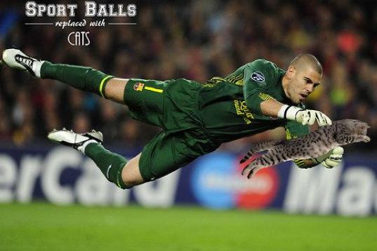En sportballsreplacedwithcats.tumblr.com los gatitos reemplazan a los balones de fútbol, de rugby, de baloncesto o a las pelotas de tenis. Por eso, es posible ver a Casillas y a Valdés intentando parar a un gato o a Rafa Nadal con uno en el bolsillo.