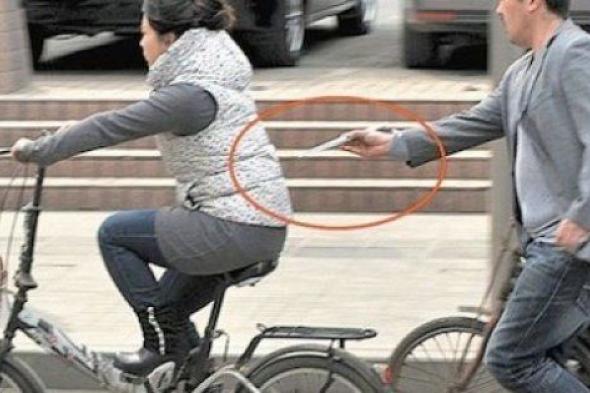 Una secuencia de robo sería la siguiente, vía DailyMail con fotos de agencias chinas, protagonizada por el hombre que es capaz de robar un móvil a alguien que va en bicicleta corriendo con palillos en la mano: