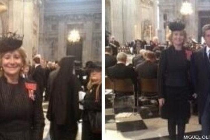 Esperanza Aguirre posa sonriente en el funeral de Margaret Thatcher