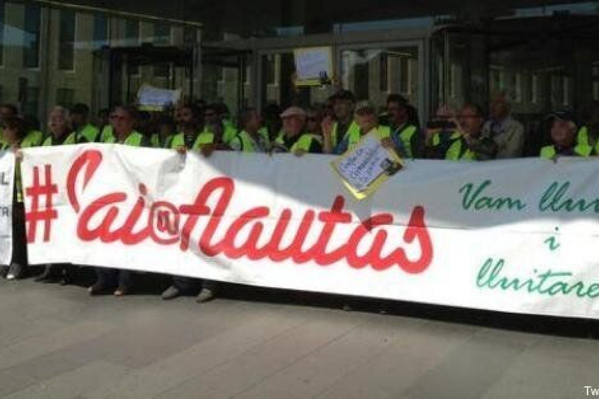 Ya fuera del recinto, entre gritos de 'sí de puede' por parte de un centenar de manifestantes, la portavoz de la Plataforma de Afectados por las Hipotecas (PAH), Ada Colau, ha tomado el megáfono y la palabra para agradecer a los 'yayoflautas' su apoyo contra los desahucios.