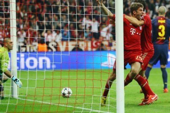 El primer mazazo llegó a los 24 minutos, cuando Müller se aprovechó de la indecisión de la defensa blaugrana para anticiparse a Piqué y rematar un centro de cabeza de Dante. Su remate no pudo despejarlo Valdés, quien ya se había tenido que esmerar desde el principio.