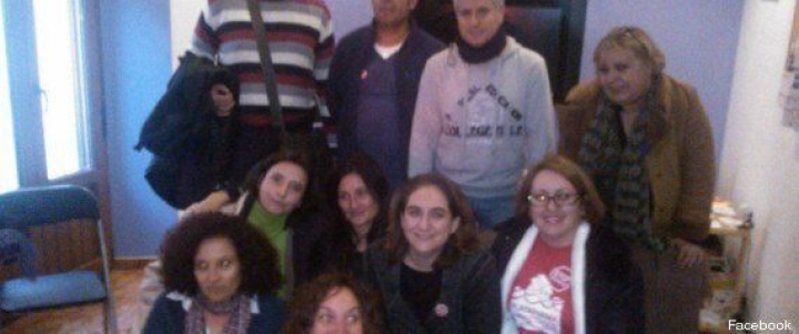 Inma, de pie a la derecha, y Susana, segunda fila a la derecha, con Ada Colau.