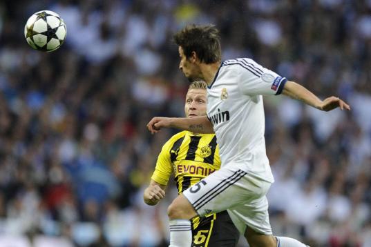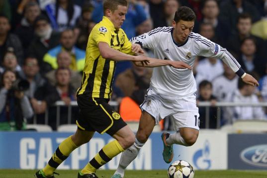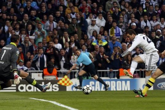 El juego del Madrid se apagaba entre intentos vanos de Ozïl, acosado por los centrocampistas rivales, y de Modric, perdido en mil batallas. Ronaldo apenas contactaba con el balón e Higuaín no olía pases de la media. Xabi Alonso contenía lo que podía las contras del Borussia, que comenzaban a sucederse.