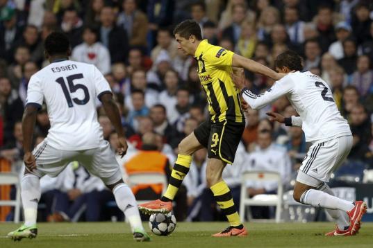 El Borussia era mejor equipo sobre el césped y comenzó a demostrarlo. Gundogan estuvo cerca de marcar pero Diego López hizo un milagro al que nos tiene acostumbrados su hasta ahora suplente, Iker Casillas. Minutos después, Lewandowski estrelló con fuerza un balón en el larguero que botó cerca de la línea de gol. A un cuarto de hora del final, Reus regateó a todos los rivales y cedió al delantero polaco, que se topó con el cuerpo de Varane.