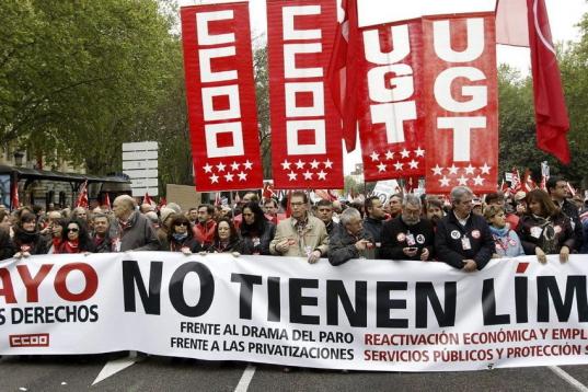 No tienen límite. Lucha por tus derechos, es el lema con el que los sindicatos han convocado 80 manifestaciones conjuntas en todo el territorio español para demandar un acuerdo social y político en favor del empleo y del crecimiento económico.