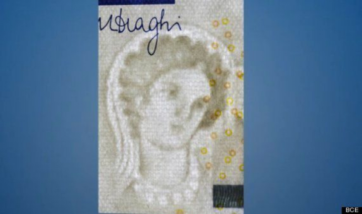 La imagen de Europa procede, sin embargo, de un jarrón de más de 2.000 años de antigüedad encontrado en el Sur de Italia y conservado en el Museo del Louvre en París. Según el BCE, ha sido elegido por su "clara asociación con el continente europeo y porque añade un toque humano a los billetes".