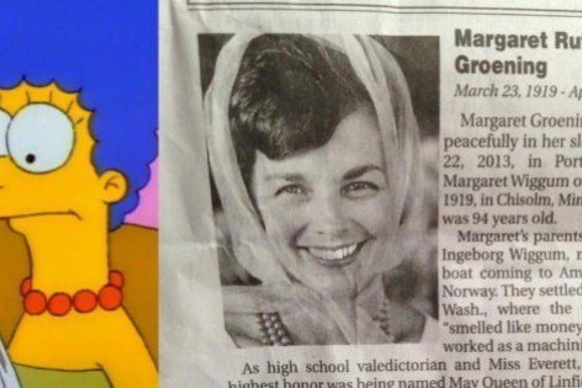 Groening nunca ha escondido que se inspiró en su familia para esta serie de animación. En su árbol genealógico también hay un Homer, su padre. Margareth se enamoró de Homer, compañero de clase, porque era "el que más le hacía reír", según recoge el citado obituario. El creador de la serie también tiene un hermano llamado Mark, que suena tan parecido a Bart.