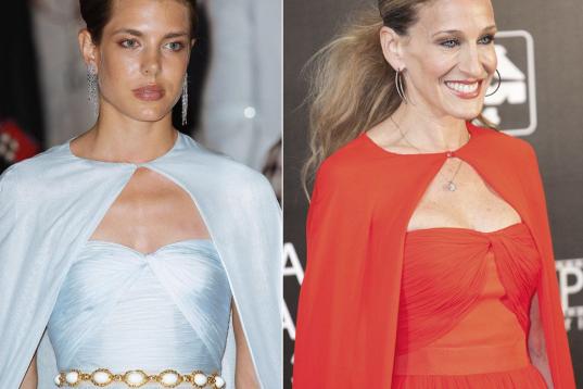 La monegasca (en uno de los actos de la boda de Alberto de Mónaco) y la actriz llevaron cada una a su estilo un impresionante Giambattista Valli.