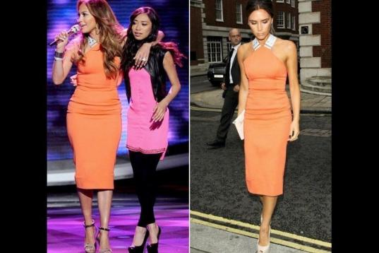 Los cuerpos de la cantante y la diseñadora no tienen nada que ver, pero a las dos les favorecía este modelo naranja.