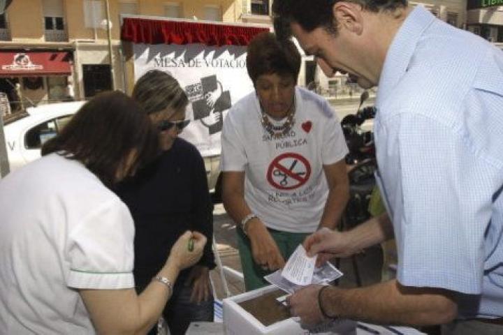 La consulta concluyó este viernes viernes. Fue organizada por integrantes de colectivos como la 'Marea Blanca', el 15-M y diversos movimientos asamblearios para que la sociedad se pronuncie sobre el proceso de externalización de seis hospitales y 27 centros de salud que impulsa el Ejecutivo regional.