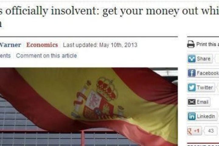 El diario británico 'The Telegraph' ha sembrado la alarma en España con un artículo de opinión en el que se analiza la situación financiera de nuestro país asegurando que es "oficialmente insolvente" y que lo más recomendable es "sacar el dinero mientras se pueda".