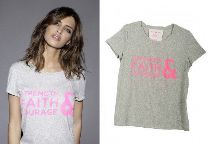 Sara Carbonero también es diseñadora. La periodista ha diseñado una camiseta para la marca The Hip Tee. De algodón gris y con unas letras rosas en las que se lee "Strength, faith and courage" (fuerza, fe y coraje), cuesta 45 euros, está disponible en dos tallas y puede adquirirse en la web de la marca.