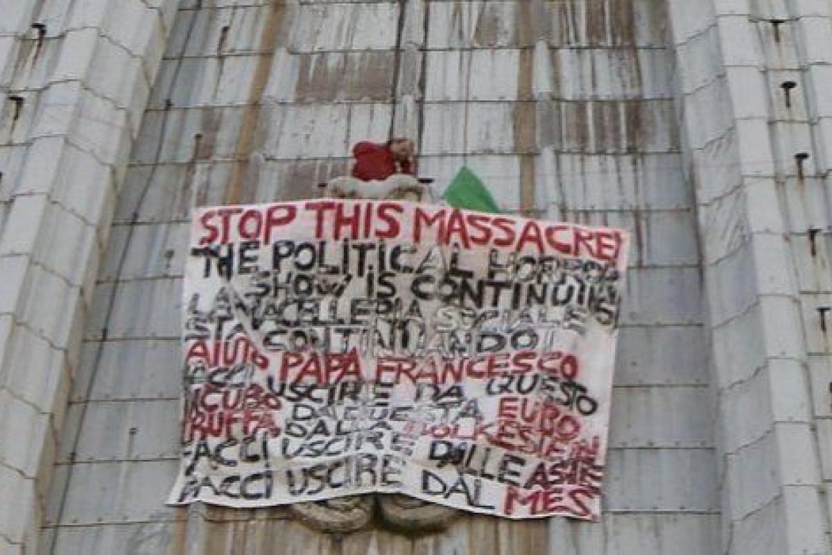 En aquellas ocasiones protestó contra el entonces Gobierno de Mario Monti y la Unión Europea (UE) y ahora, al igual que las otras dos veces, accedió a la cúpula como un turista más, saltó la verja de seguridad y se encaramó a un "ojo de buey" de la bóveda.