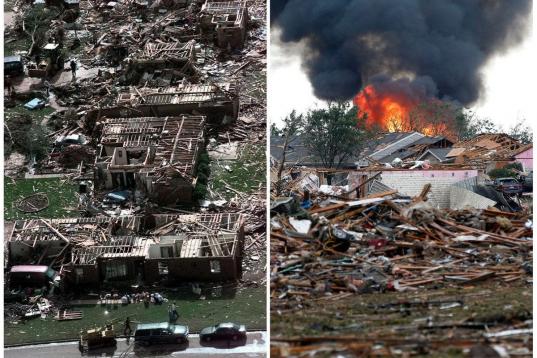 Se da la circunstancia de que en 1999 otro tornado afectó a Moore, destruyó parte de la localidad y mató entonces a 41 personas.