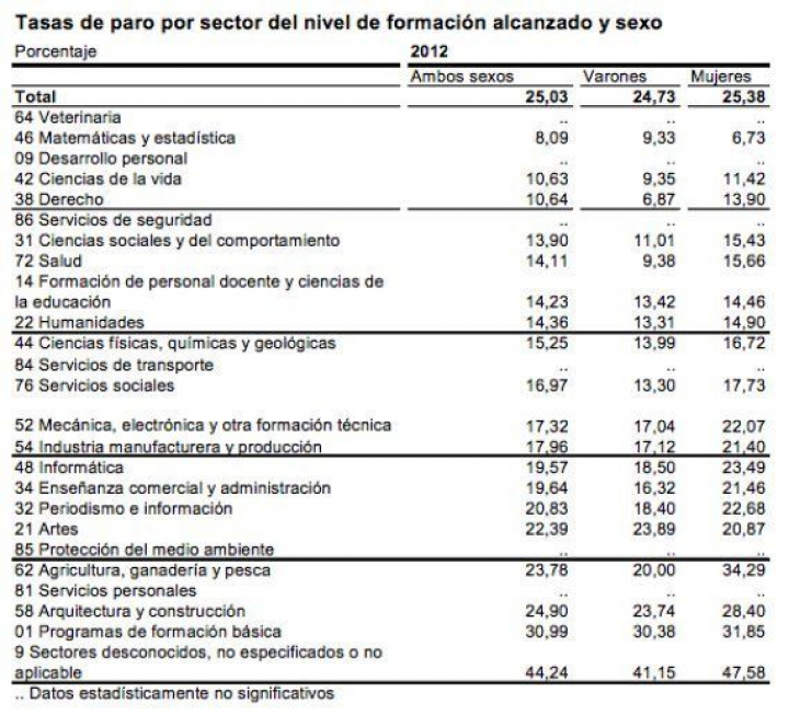 Por el contrario, las más bajas se dieron entre las personas formadas en Matemáticas y estadística (8,09%) y en Ciencias de la vida (10,63%).