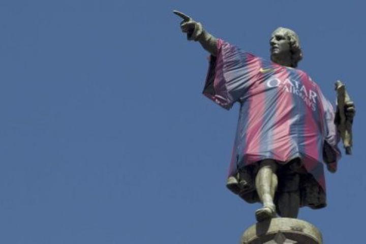 Críticas al Ayuntamiento de Barcelona por ponerle la camiseta del Barça a la estatua de Colón