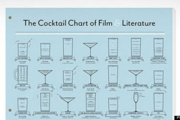 En este panel de recetas de cócteles de cine y literatura (y series de televisión), un recopilatorio de Pop Chart Lab, especializado en este tipo de listas, acompaña cada receta por el tipo de copa y el nombre del personaje de ficción que lo degusta. Puedes explorar esta guía para innovar en tu próxima fiesta pinchando sobre la imagen de póster, vía L'HuffPost.