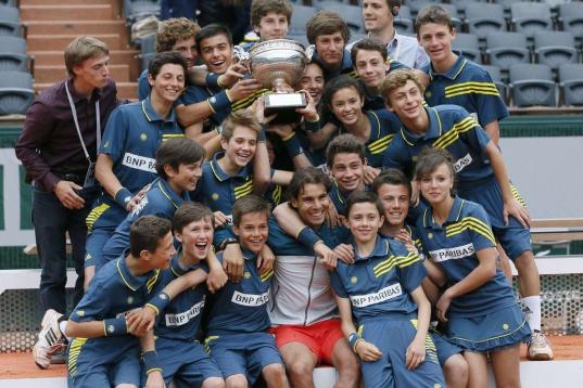 Rafa Nadal ha hecho historia. Una vez más. El tenista balear ha superado con claridad a otro español, David Ferrer (6-3, 6-2 y 6-3) y se ha llevado su octavo título de Roland Garros, el cuarto consecutivo. Es el rey absoluto de todos los tiempos en ese Grand Slam y, además, con su victoria ha conseguido lo que nunca nadie antes había logrado: ganar 8 veces un 'grande'.