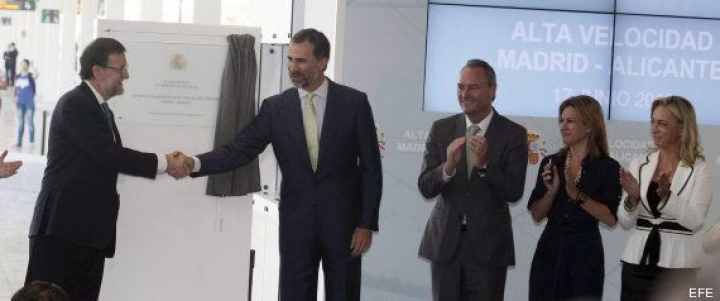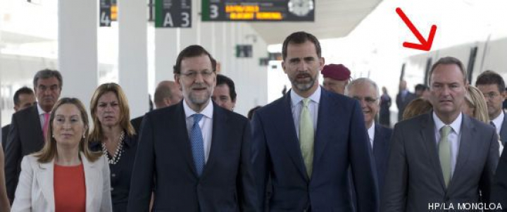 Este otro momento corresponde a la bajada del tren, en Alicante. En segunda fila está la alcaldesa, tras Fabra y José Manuel García-Margallo.