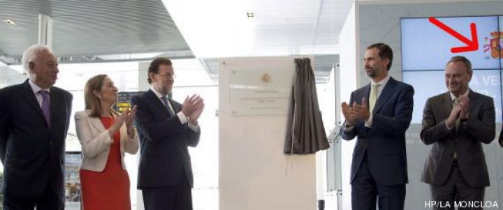 En esta foto aparecen al lado del príncipe el presidente de la Comunidad Valenciana, Alberto Fabra, la delegada del Gobierno en la Comunidad Valenciana, Paula Sánchez de León, y la alcaldesa, la última.