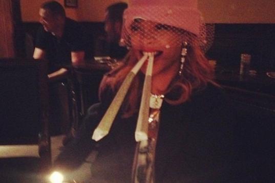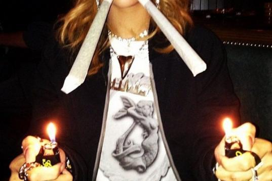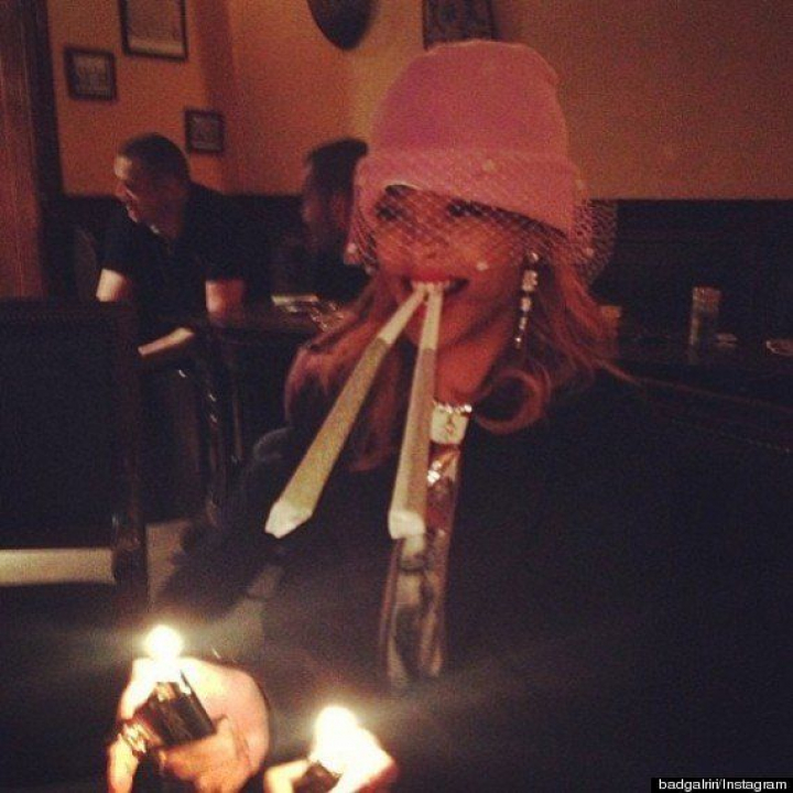 Rihanna, que nunca ha escondido su pasión por los porros, se ha fotografiado con dos de tamaño XXL (¡o más!) en Ámsterdam. La cantante, de 25 años, ha compartido sus fotos en redes sociales lanzando de paso un mensaje a favor de la legalización de la marihuana.