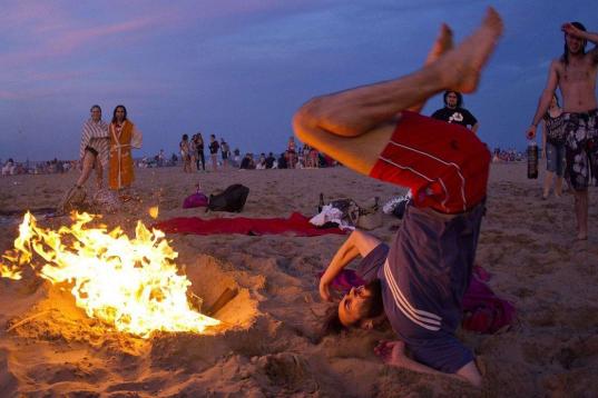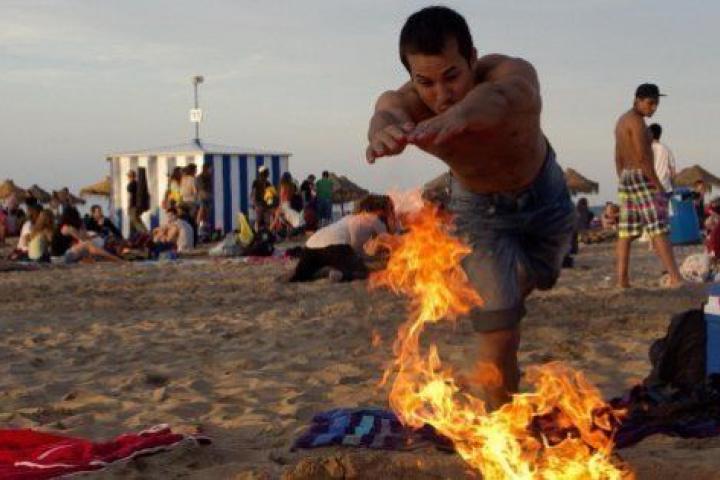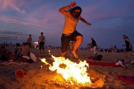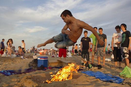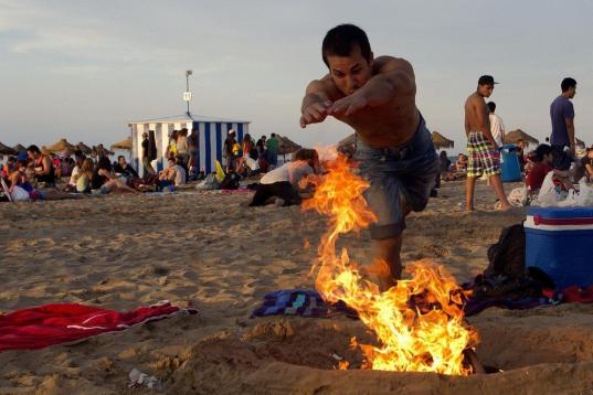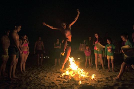 Miles de personas han pasado la noche de San Juan saltando hogueras en muchas de las playas del territorio español. Hogueras pequeñas, medianas y grandes. Saltándolas de espaldas, dando una voltereta o, simplemente, de frente, para no quemarse.