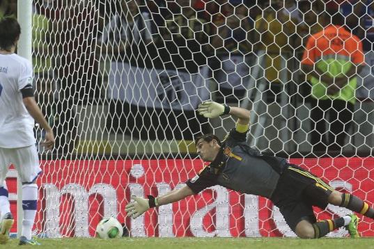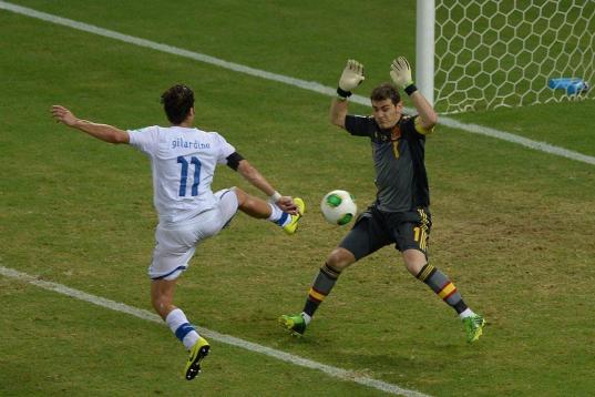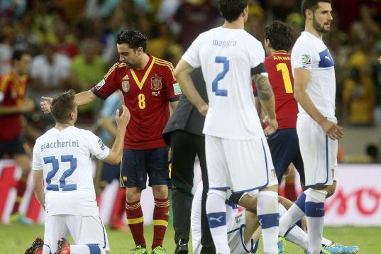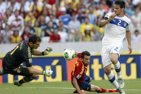 Pero apenas un par de internadas de Iniesta y un disparo de Pedro fueron las ocasiones españolas. Italia, cómoda atrás, se limitó al balón en largo, buscando la indecisión de la zaga rival.