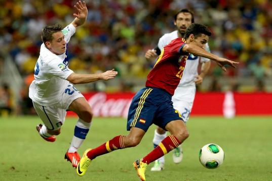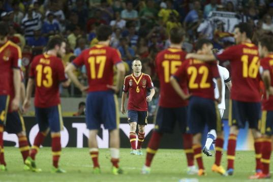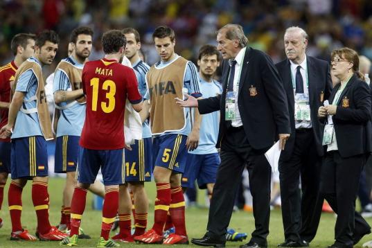 Y lo logró, pero el partido se tornó feo y anodino. España buscaba incesantemente a Navas, puntal ofensivo del equipo. A sus carreras y centros no llegaba Torres, que intentó un par de jugadas de peligro. Iniesta también peleó lo suyo para crear algo de fútbol, sobre todo cuando ya estaba Mata en el campo, en sustitución de Pedro.