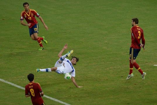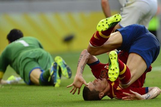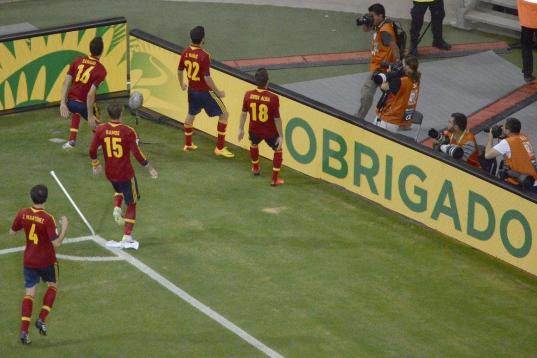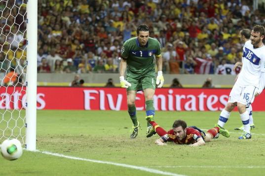 En el tiempo extra, Italia remató un balón al palo derecho de Casillas y España, con Javi Martínez de delantero en sustitución de Torres, tuvo un par de ocasiones en acciones a balón parado en los pies y la cabeza de Piqué.
