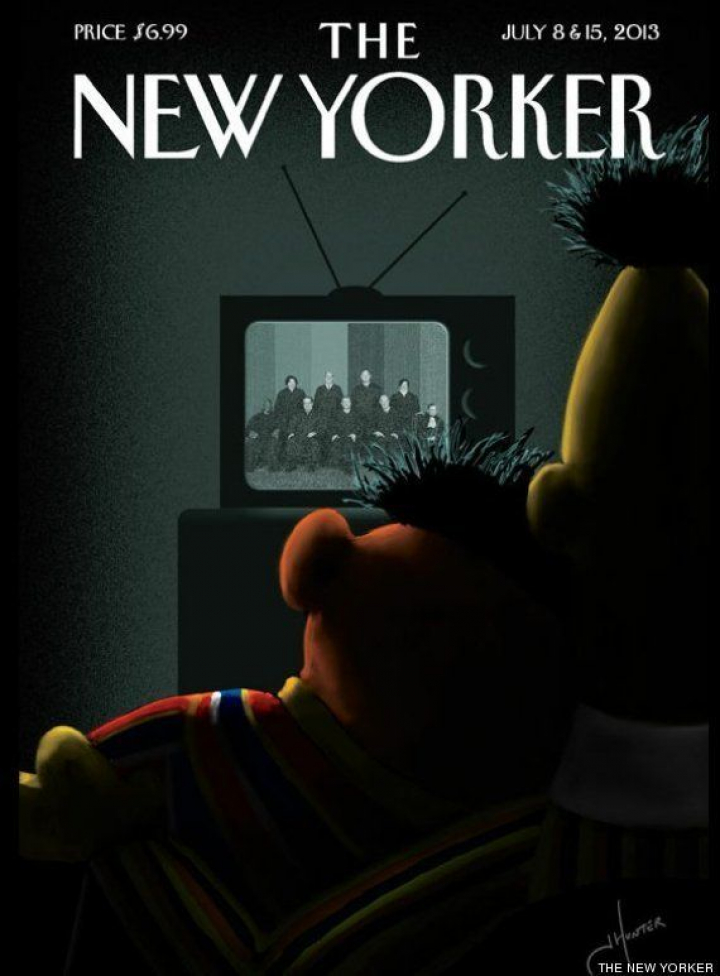 Qué mejor manera de celebrar que el Supremo de Estados Unidos ha apoyado las bodas entre homosexuales y que toca celebrar el Orgullo Gay que llevar a la portada a Epi y Blas, personajes de Barrio Sésamo que la revista utiliza como icono gay pese a que los creadores de la serie han señalado que sólo son amigos. Lo ha hecho The New Yorker: