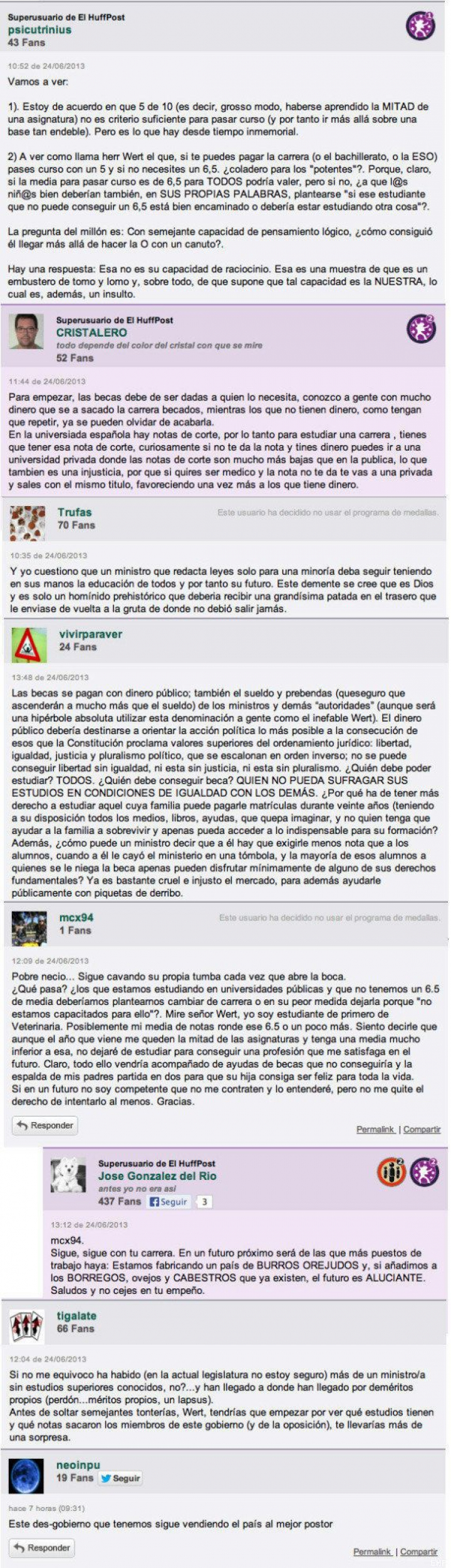 La semana no se ha quedado corta en noticias y protagonistas. El lunes empezó calentito con la que ha sido sin lugar a duda una de las polémicas de la semana, servida de manos del ministro José Antonio Wert, que planteaba que todo aquel alumno universitario cuyas notas no llegaran al 6,5 deberían dejar la carrera. Hasta el gobierno del PP le reprendió.