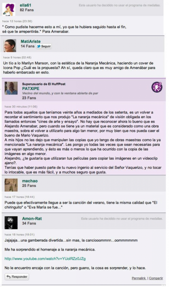 También esta semana nos hemos enterado del último proyecto de Alejandro Amenábar: dirigir un videoclip de Las Nancys Rubias, el grupo de Mario Vaquerizo. Aunque a los lectores no les ha parecido una gran obra de arte por lo que se ve en los comentarios