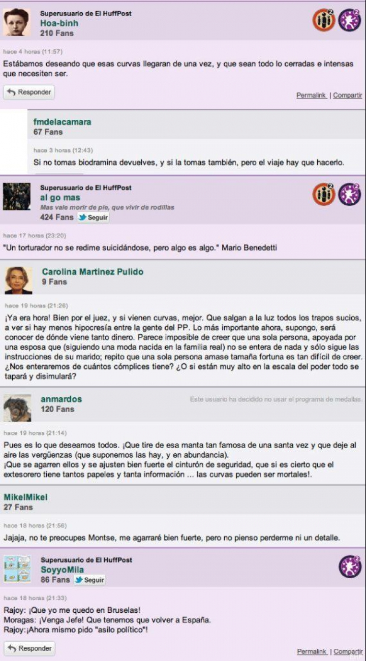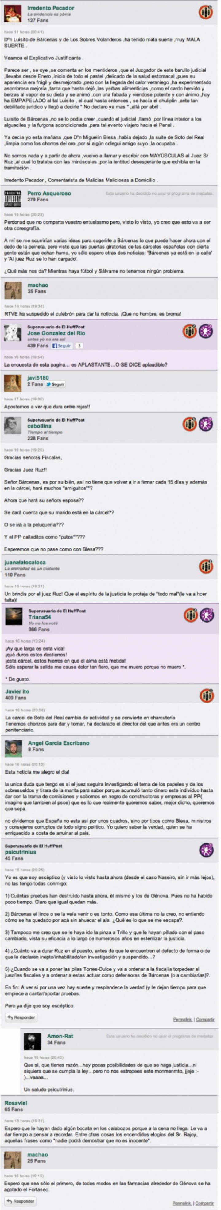 Y, por supuesto, la que es gran noticia de la semana: la entrada en la cárcel de Soto del Real de Luis Bárcenas por orden del juez, que decretaba prisión incondicional sin fianza. Más de 200 comentarios expresaban la alegría (y la prudencia) de los comentaristas.