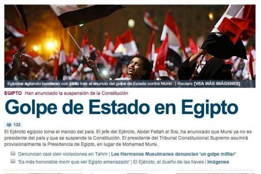 "Unas fuerzas democráticas -el movimiento Tamarod, que se traduce como Rebeldía- llevan meses recogiendo firmas en un documento en el que no se reconoce a este presidente. En esos papeles había unos objetivos determinados: acabar con Morsi, disolución del Parlamento, y derogación de la Constitución islamista hecha a espaldas del pueblo egipcio hace meses. A partir de ahí han marcado una hoja de ruta que establece que el presidente del Tribunal Constitucional tomará el poder hasta la redacción de una nueva Constitución o su modificación, y hasta que se celebren unas elecciones parlamentarias democráticas. Firmaron 22 millones de personas, mientras que Morsi ganó por 14 millones de votos". Las Fuerzas Armadas lo que están haciendo, según él, es asegurar que se cumpla esa hoja de ruta diseñada por el pueblo, le guste más o menos.
