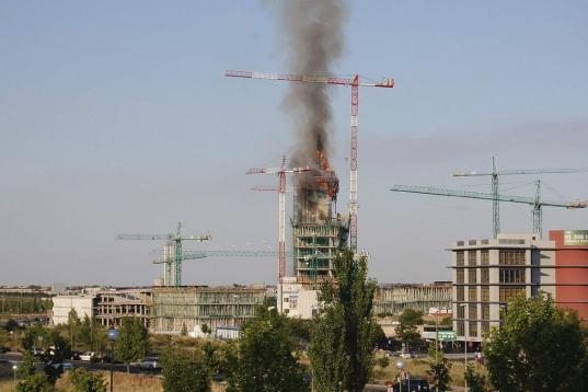 Espectacular incendio en un complejo del BBVA en construcción en Las Tablas, Madrid (FOTOS)