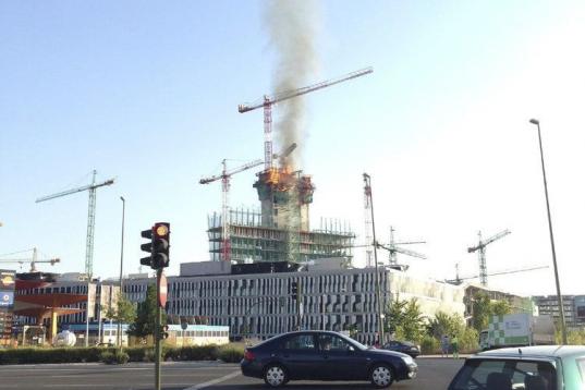 Hasta el lugar del suceso de han desplazado los bomberos, según han comentado las mismas fuentes, aunque han teniendo dificultades para sofocar el fuego ya que se desprendió el encofrado del inmueble inacabado. El edificio tiene proyectado 19 plantas.