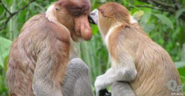 Otro es el mono narigudo (Nasalis Larvatus) de Borneo. Hay quien los llama monos-pinocho. Es el único primate conocido que regurgita la comida para masticarla otra vez.