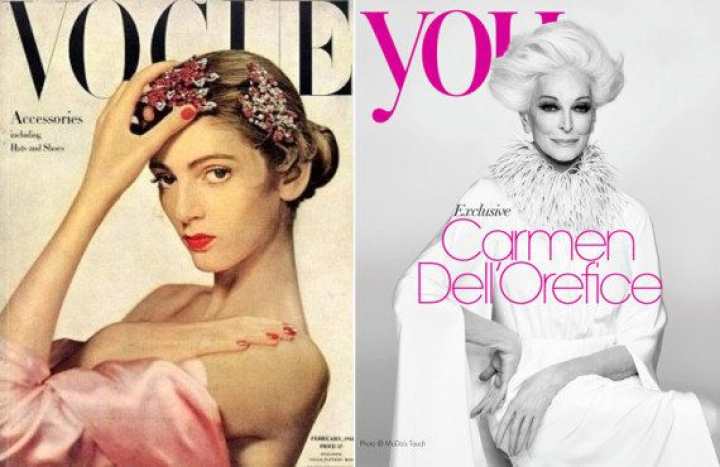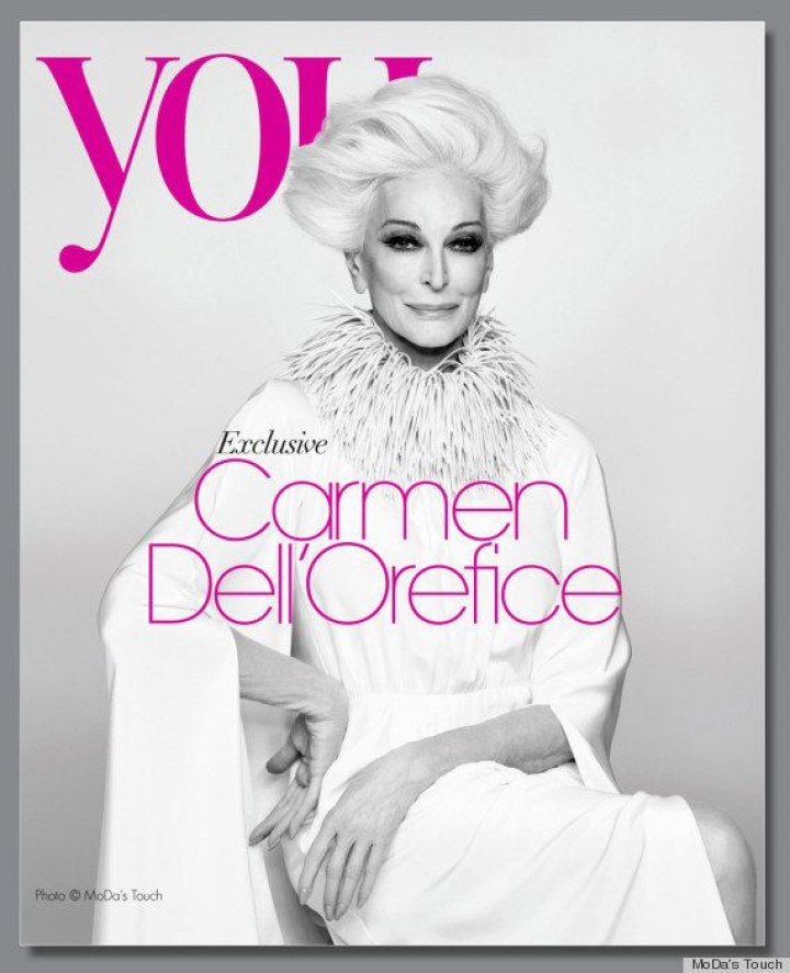 Carmen Dell'Orefice tiene 82 años y sigue haciendo portadas como cuando tenía 15. La modelo, la mayor en activo del mundo, protagonizó el domingo su última foto de primera página para la revista editada por The Daily Mail, You.