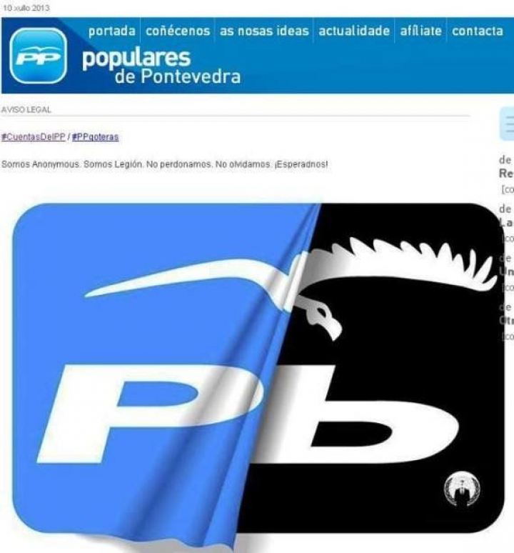 Anonymous y el PP de Pontevedra: Los activistas atacan la web del partido y colocan un buitre