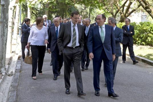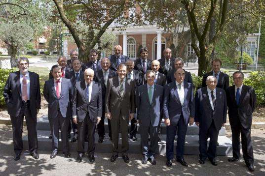 Cara a cara, entro otros, con los integrantes del Consejo Empresarial por la Competitividad: entre otros el presidente de Telefónica, César Alierta; Iberdrola, Ignacio Sánchez Galán; Caixabank, Isidro Fainé; Repsol, Antonio Brufau; BBVA, Francisco González; Ferrovial, Rafael del Pino; Mercadona, Juan Roig; y Grupo Barceló, Simón Pedro Barceló.