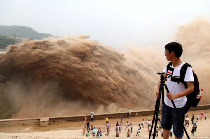 El río amarillo, a la altura de la presa de Xioaolangdi, se limpia de sedimentos para que su nivel no acabe subiendo e inundando los márgenes. Se hace inyectando agua a 2.600 metros cúbicos por segundo, y deja este tipo de espectaculares imágenes. Se calcula que se mueven hasta 30 millones de toneladas de arena, el equivalente al peso de seis millones de elefantes, calcula BBC.