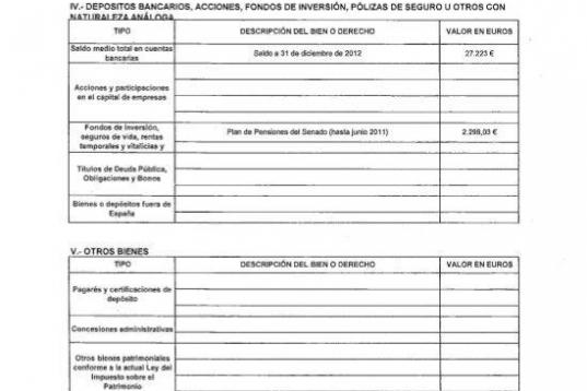Declara también poseer 27.223 euros de saldo en sus cuentas bancarias, además de un plan de pensiones valorado en 2.298 euros y un coche tasado en 7.500 euros.