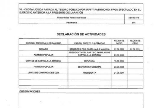 Cospedal ingresó en 2012 61.263 euros netos, según su declaración de actividades (FOTOS)
