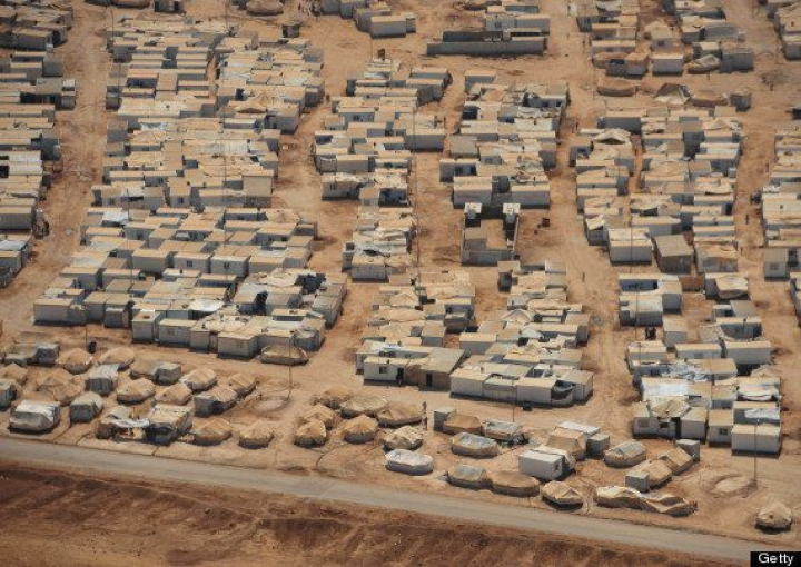 Vista aérea del campo de refugiados de Zaatari en julio de 18 de 2013 cerca de la ciudad jordana de Mafraq, a 8 kilómetros de la frontera. (MANDEL NGAN/AFP/Getty Images)