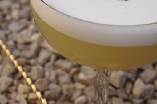 En la coctelera, machacamos ligeramente las hojas de albahaca junto con los zumos para ...