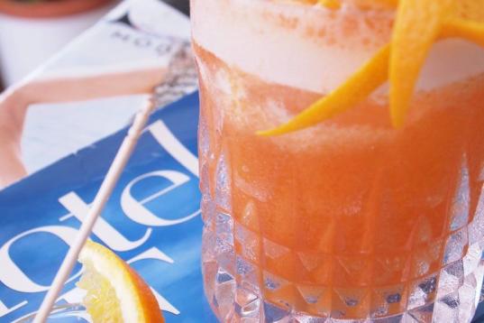 Preparamos los zumos y ponemos todos los ingredientes en la coctelera con hielo. Agitamos en...