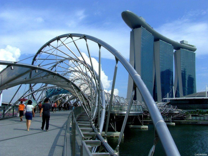 Aunque uno no se aloje en este increíble hotel, se puede visitar. Tres torres unidas por una curiosa estructura con forma de barco que presume de ser la plataforma más alta del mundo. Allí se encuentra la piscina del hotel Marina Bay Sands, desde donde se tienen unas vistas increíbles de toda la ciudad. También dispone de discoteca, restaurantes y un centro comercial.