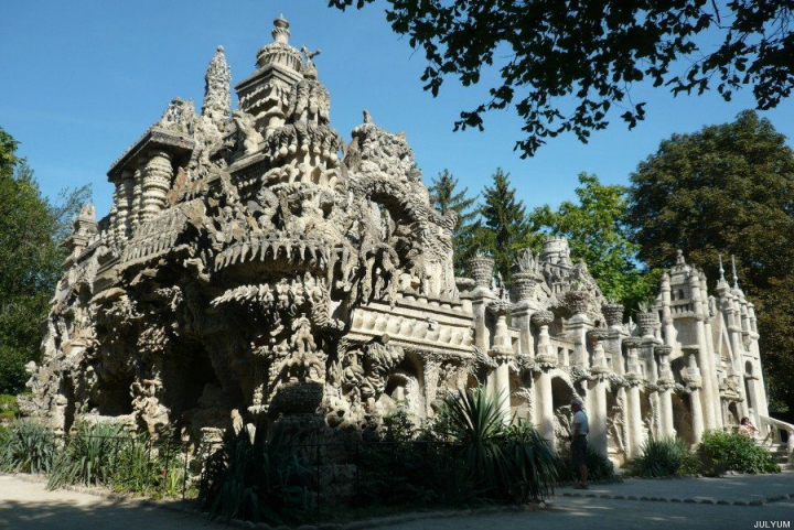 El Palacio Ideal es una obra del conocido como arte marginal, es decir, que no sigue los cánones típicos de la cultura. Su historia es tan bonita como triste: Ferdinand Chavel, su creador, contaba que un día se tropezó con una piedra y se le ocurrió la idea de esta obra. Recogió piedras, las llevo con una carreterilla y empezó su trabajo. 33 años tardó en acabarla, entre críticas de los vecinos que le creían un loco.