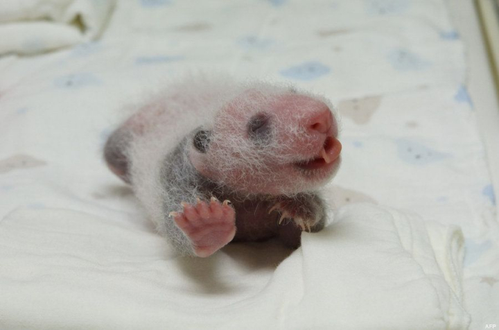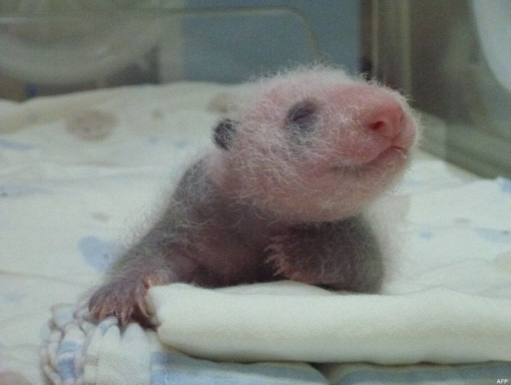 Las fotos de esta cría de oso panda gigante son de las mejores imágenes de animales que hemos recibido en lo que va de año. Nacen pesando poco más de 100 gramos y, de adultos, llegarán a unos 130 kilos.